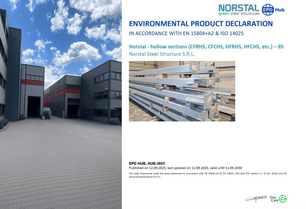 Norstal has issued an Environmental Product Declaration (EPD) for Hollow Sections (CFRHS, CFCHS, HFRHS, HFCHS, etc.) – 85, ensuring clear transparency about their environmental impact for structural and industrial applications. Developed under the EPD Hub framework, it offers verified, reliable data to support customers in making sustainable, eco-friendly decisions.